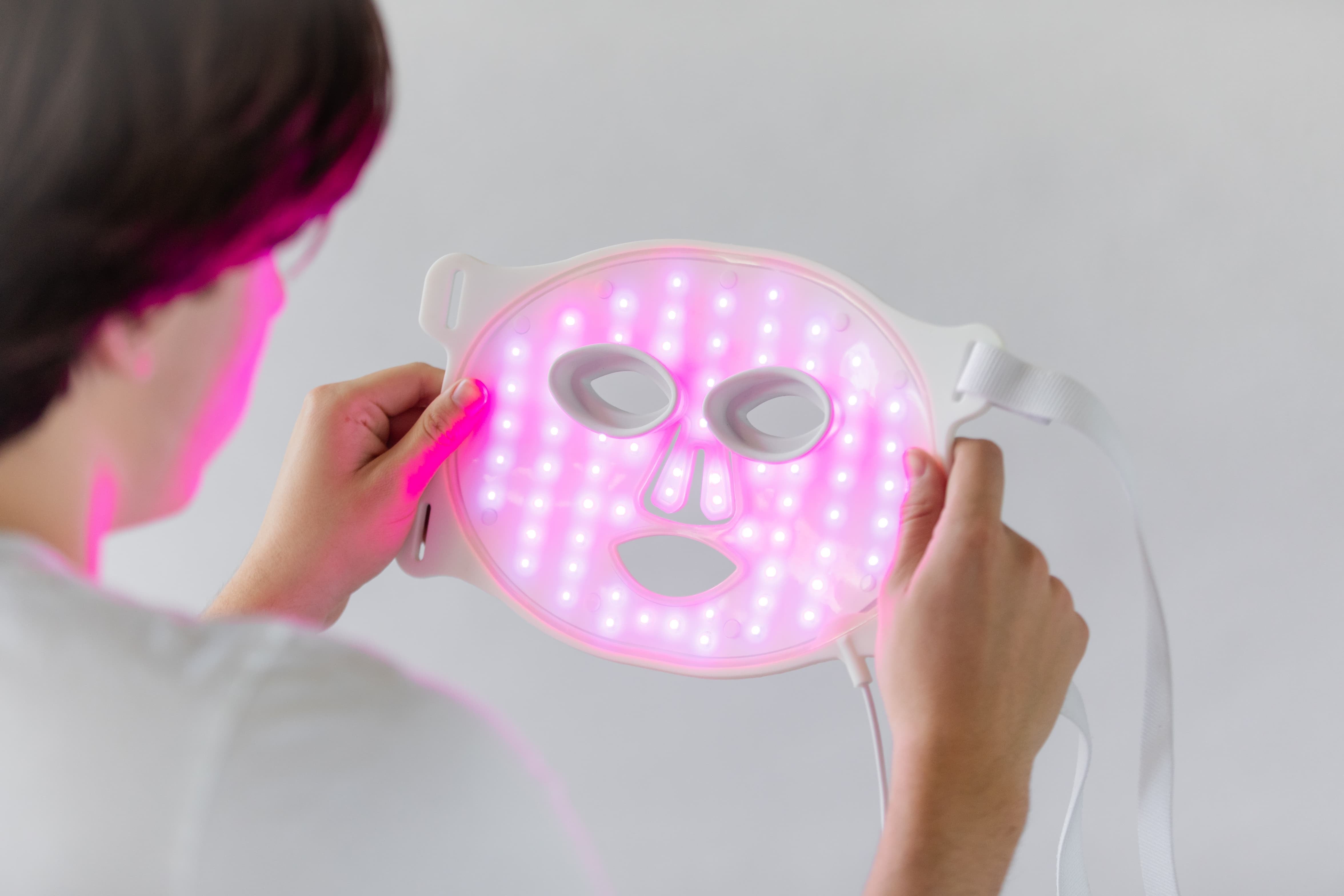 The mask is worn on the face and is held in place by an adjustable Velcro strap. The mask is controlled by a rechargeable controller that switches the LEDs ON/OFF and controls power to the mask. Because the device is powered by a rechargeable battery, you can wear the mask and move around, watch TV or write a blog post, while undergoing treatment.